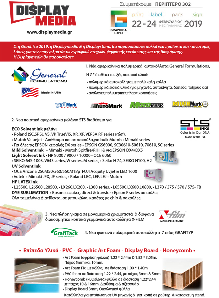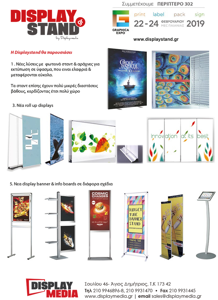 Σουλίου 46, Άγιος Δημήτριος ,Αθήνα, 173 42 Tel.: 210 9946896- , Fax: 210 9931445 www.displaymedia.gr www.displaystand.gr