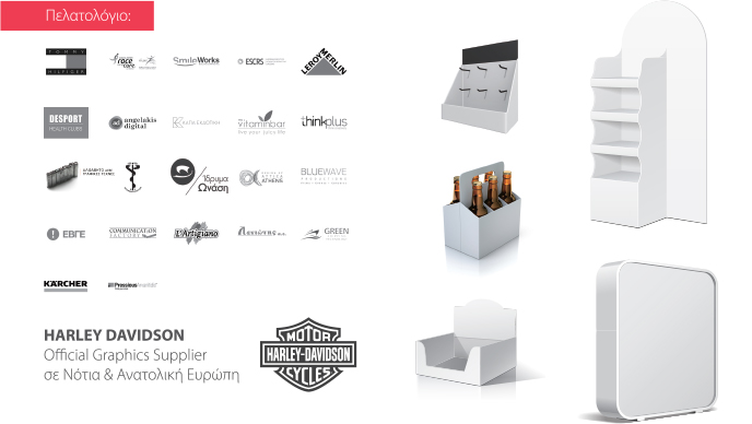 Στον τομέα της κατασκευής χάρτινων προωθητικών σταντ, η εταιρεία μας σας παρέχει την δυνατότητα σχεδιασμού με σκοπό την απόλυτη εφαρμογή πάνω στο προϊόν σας. |