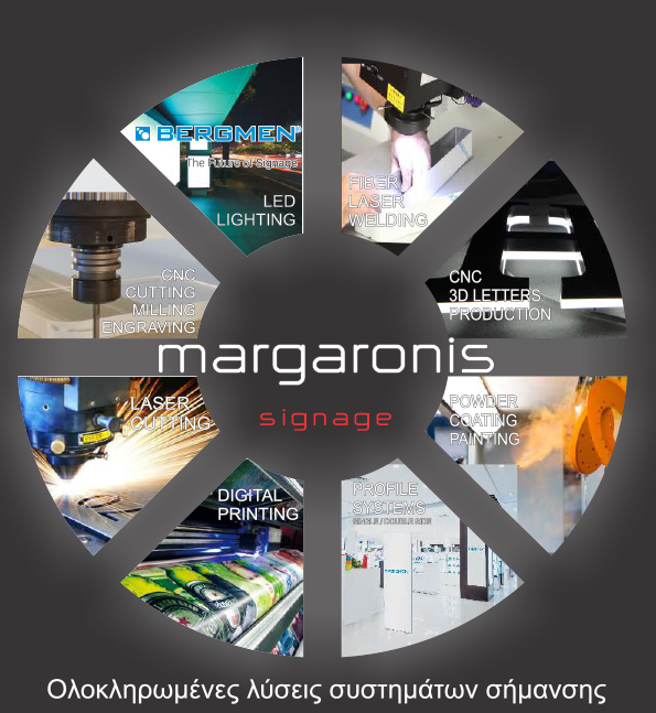 Η εταιρεία Margaronis (Αφοί Μαργαρώνη Ο.Ε.) είναι μια κατασκευαστική εταιρεία που δραστηριοποιείται στον χώρο των διαφημιστικών κατασκευών ,ψηφιακών εκτυπώσεων. Ιδρύθηκε από τους Αδερφούς Μαργαρώνη στα τέλη της δεκατίας του 90΄.